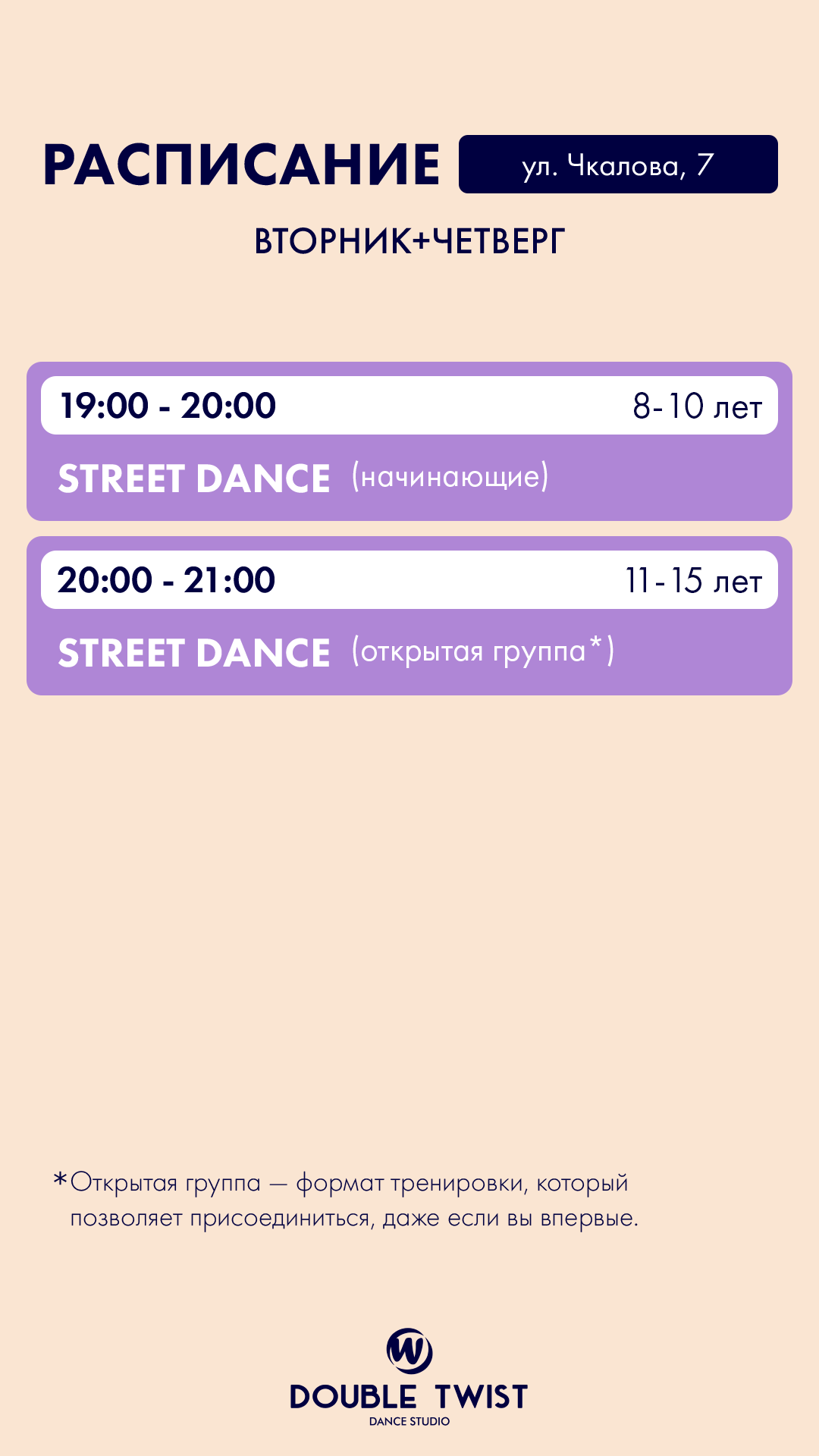 "Ваш ребёнок скован и замкнут в себе? Или же наоборот, вы не знаете как совладать с гиперактивностью вашего чада? Студия танца Double Twist объявляет открытие нового танцевального сезона 2021 и проводит набор в группы для детей и молодежи.